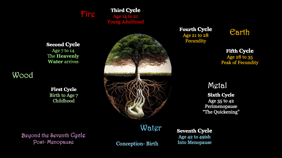 While your Moon Journal serves as a guide to understand your monthly rhythms, the Seven (and beyond) Cycles of Essence, as described in East Asian Classical medicine, invite you to reflect on the narrative of your life, tracing its arc from the moment of conception to this very day. With this in mind, think of your life as a book, with each part representing a distinct chapter (a cycle) in the unfolding saga of your life. Clearly, the book is unfinished, continually evolving. As we travel with The Elements and the Moon, you will notice that your interpretation of significant events in your life may transform in profound ways.